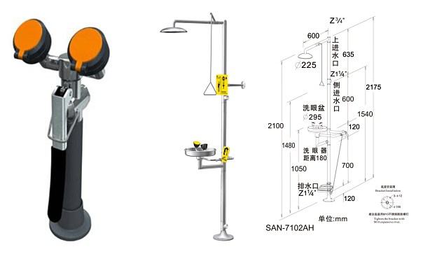 3. Foot treadle stainless steel available: activating eye wash valve ( non-standard supply).